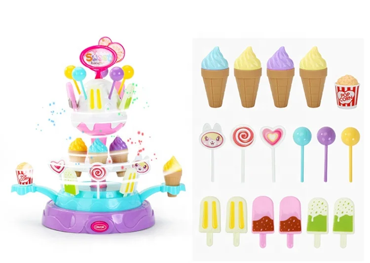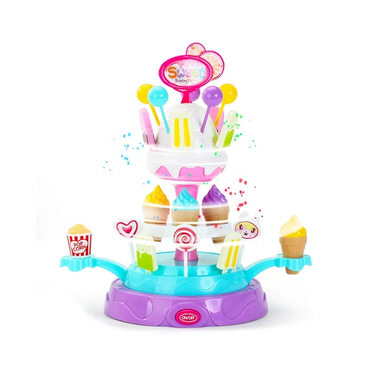 Electric Plastic Interactive Ice Cream Dessert Food Pretend Play Rotating Sweet Candy Toy with Light and Music