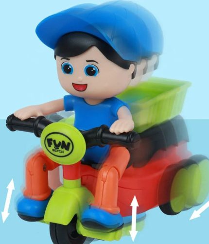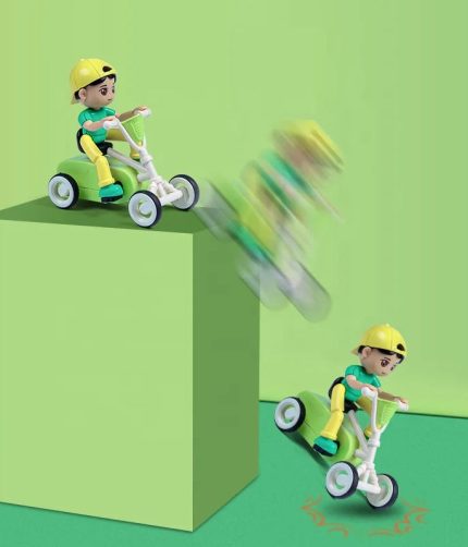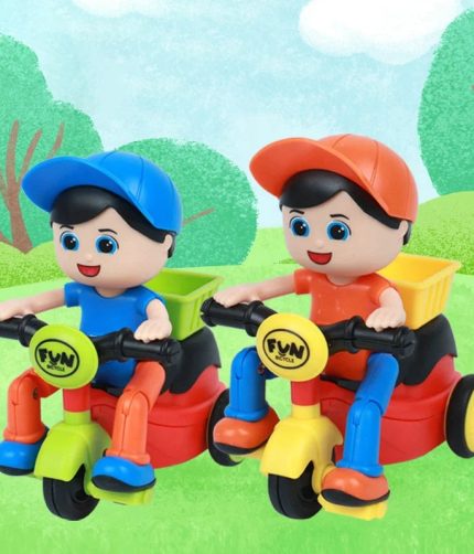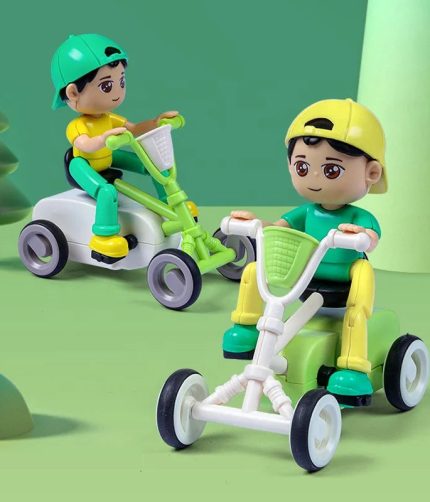 Plastic Inertial Toys Car Cute Cartoon Shape 360 Rotation Mini Stunt Tricycle Friction Car Toy Vehicle For Kids