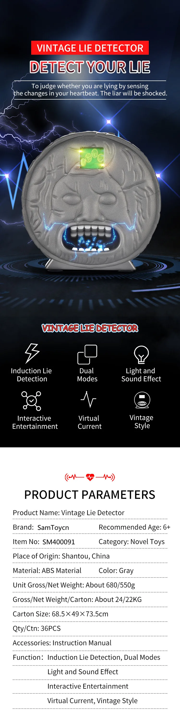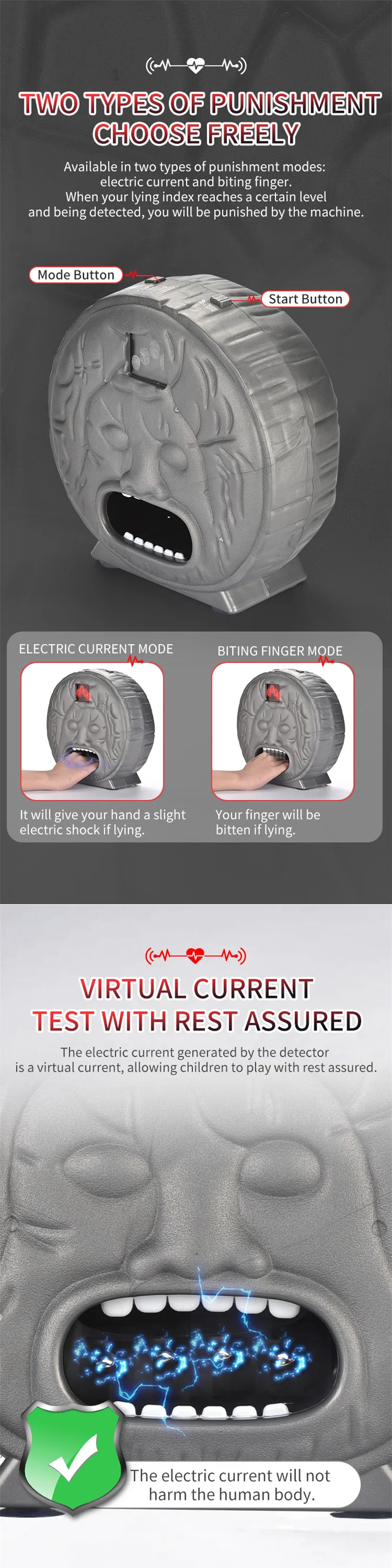 Fun Electric Shock Vintage Scanning Lie Detector Test Game Machine