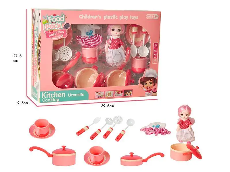 | Product name | Plastic Pretend Play Pink Girl Cooking Toy Set Kitchen with Doll |