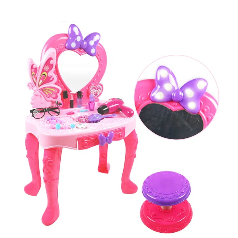 Girl Makeup Set Toy Kids Mirrored Dressing Table with Music Light?