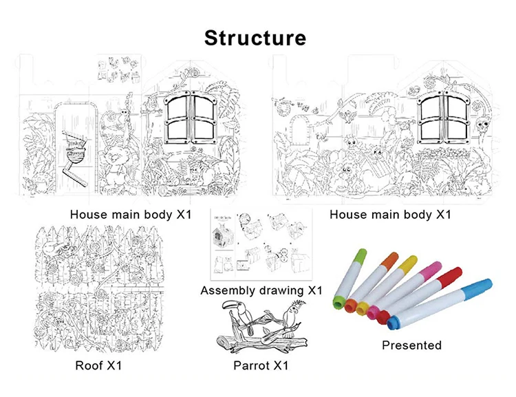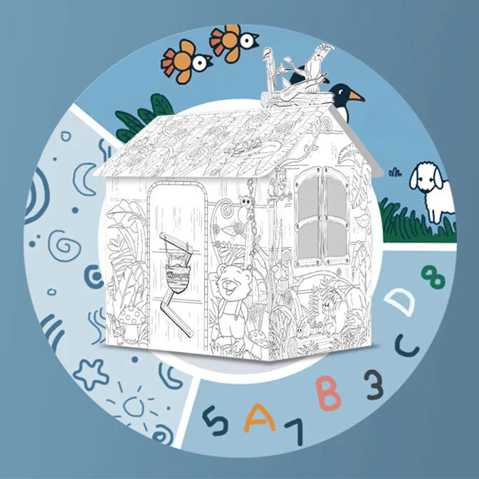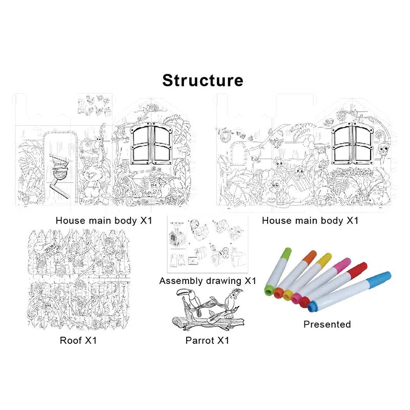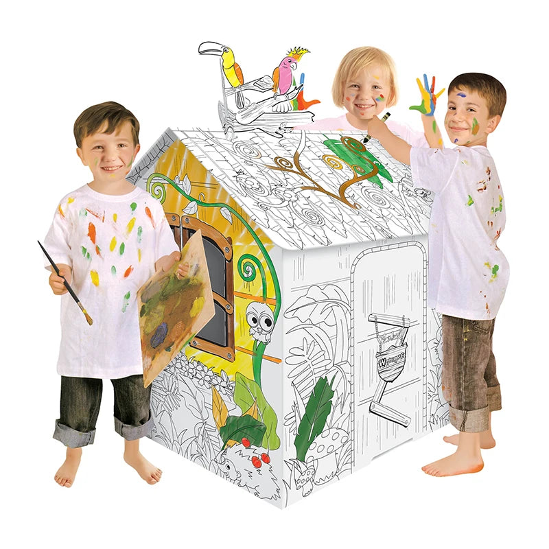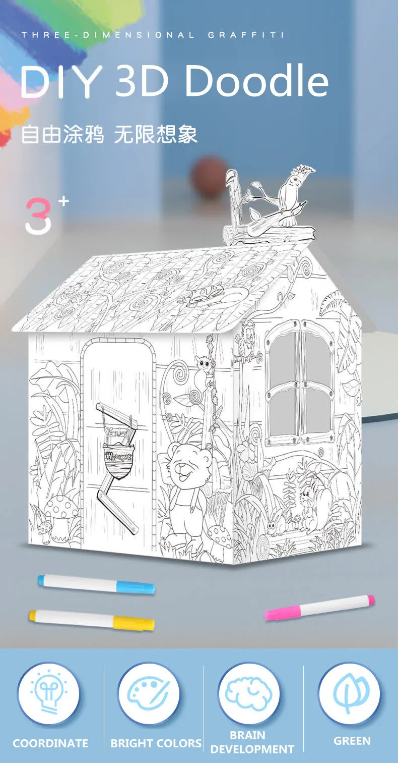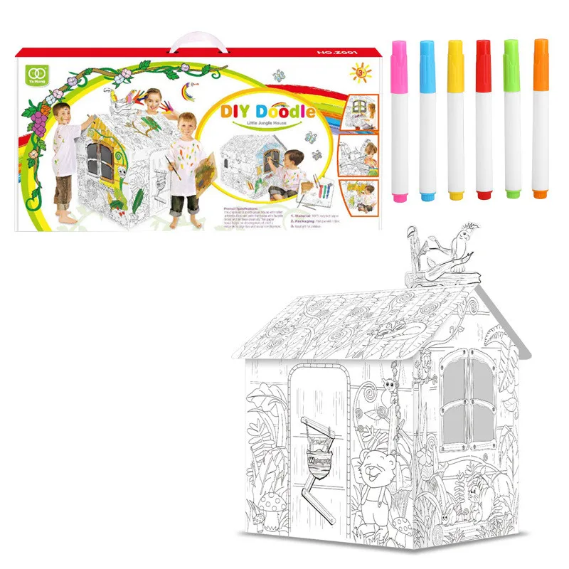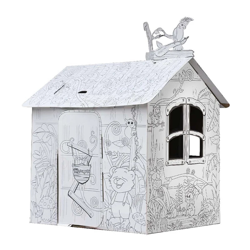 Jungle House DIY Doodle 3D Craft Cardboard Paper Play House For Kids?