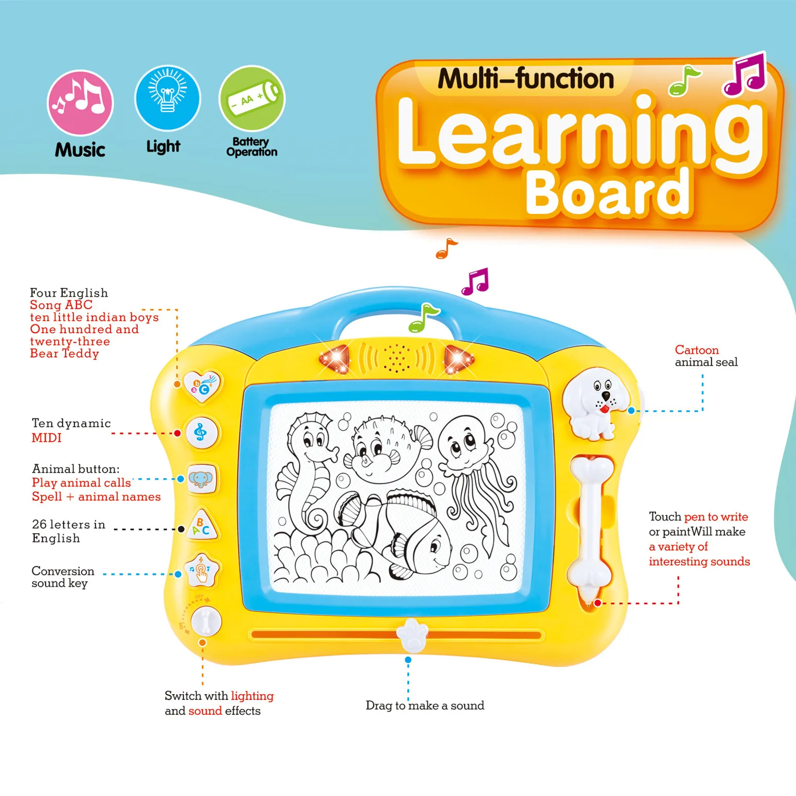 | Product name | Kids cute Black White Wordpad Music Light Magnetic Drawing Board Toy |