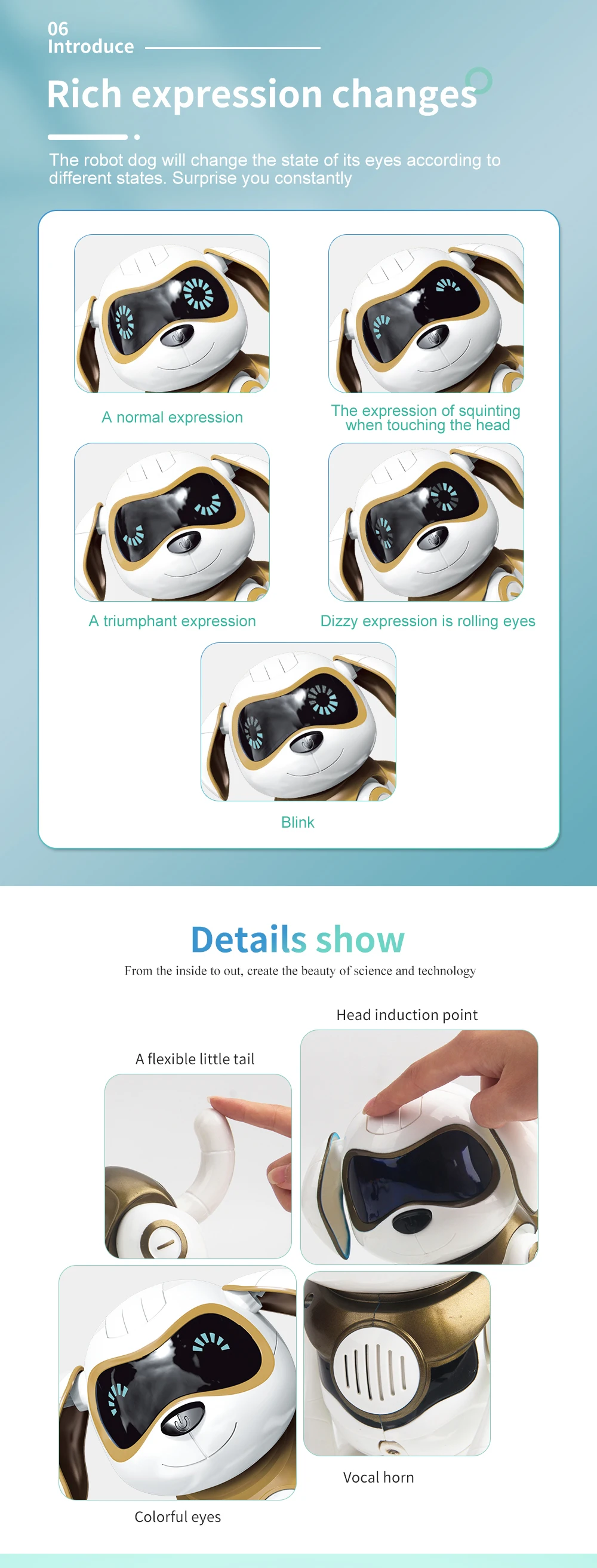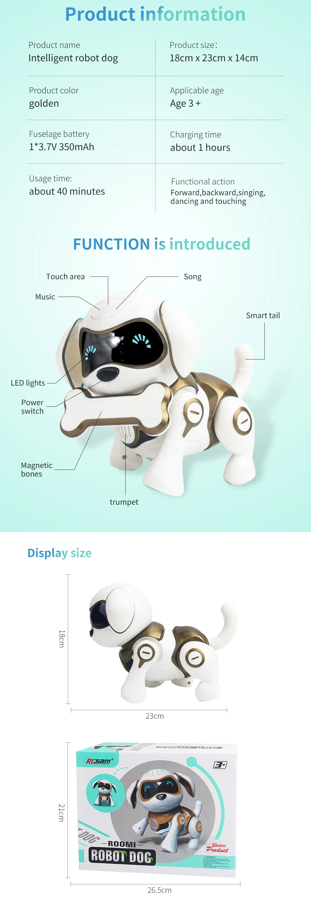 | Feature | Smart tail, magnetic bones, led eyes |