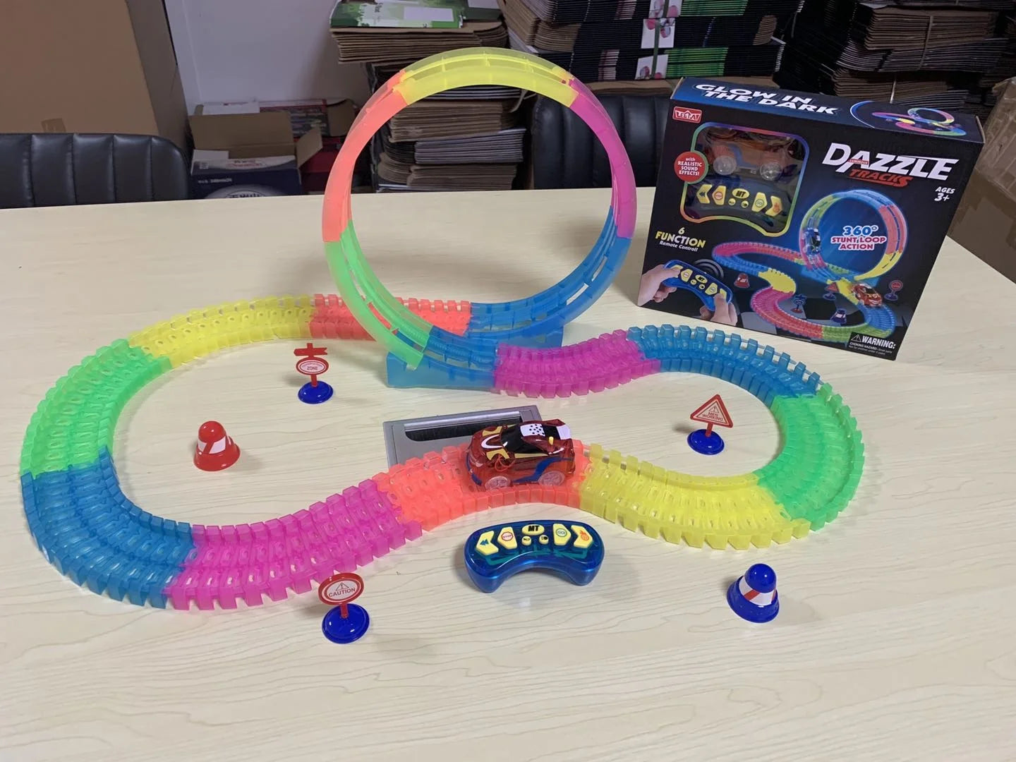 Magic Glowin The Dark 360 Rotating Loop Flexible Track RC Solt Toys Rail Car With Light