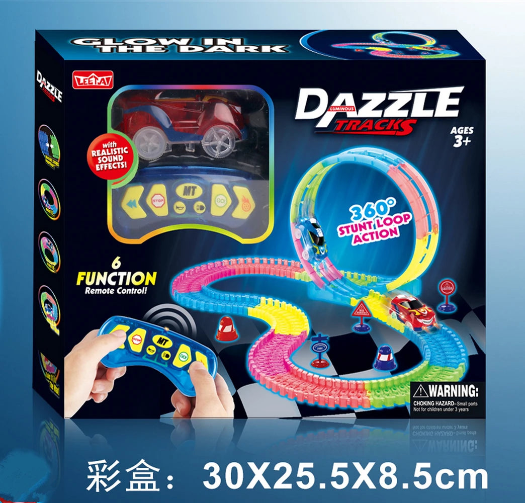 Product Description Magic Glowin The Dark 360 Rotating Loop Flexible Track RC Slot Toys Rail Car With Light