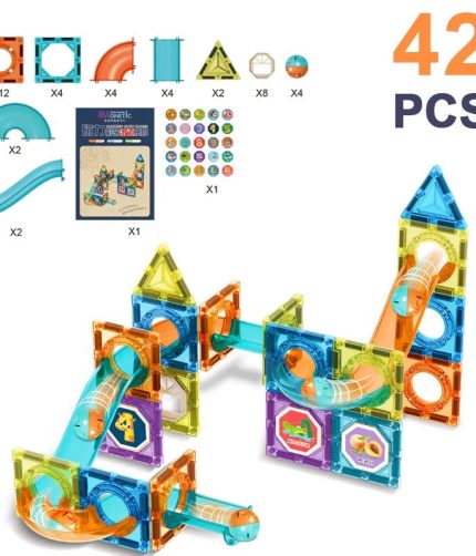 OEM ODM Educational 42pcs 3D Puzzle Magnetic Pipeline Rolling Slide Building Block Sets Diy Toy for Kids