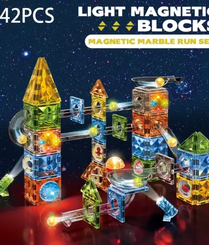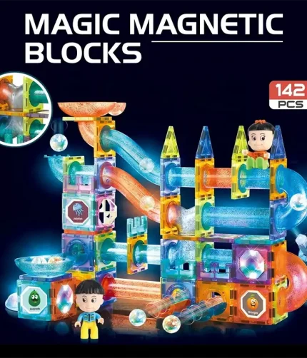 Wholesale Magic Magnetic Tiles Building Blocks Light Up Marble Run Race Track Set for Kids 142pcs