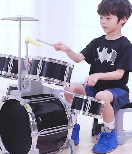 Educational Plastic Popular Solid Black Jazz Drum Toy Musical Instruments Kids Jazz Drum Set With Stool