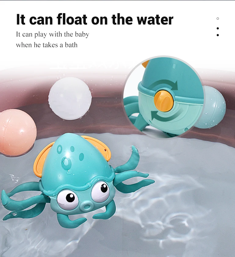 Detail of?New Plastic Wind Up Line Pull Floating Water Crawling Walking Octopus Baby Bath Toy Animal with Water Toys Amphibious
