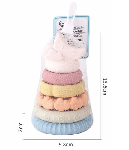 Wheat straw Baby Chewable Teethers Soft Silicone Building Block Rings Stacker Tower Squeeze Play Stacking & Nesting Circle Toy