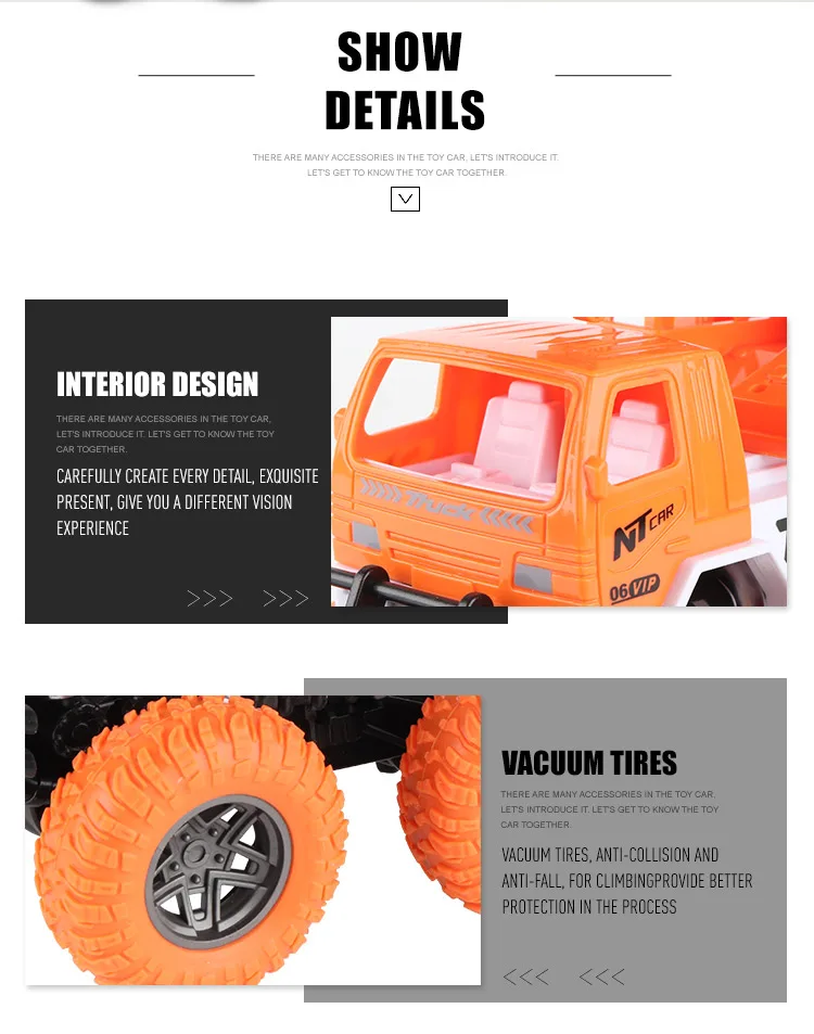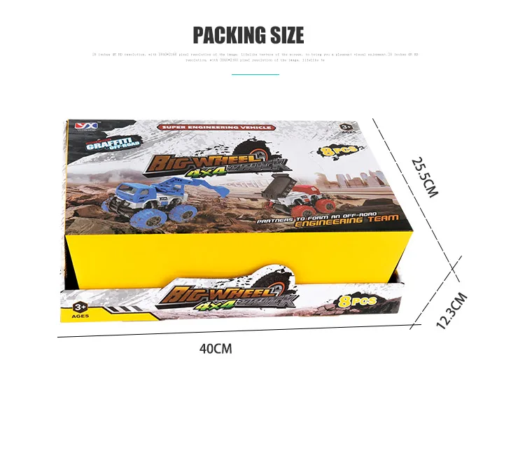 | Packaging Details | 1 set/ Display Box, 18 boxes/ Carton, can change the quantity per carton Off Road Climbilng Engineering Truck Friction Other Toy Vehicle with Certificates |