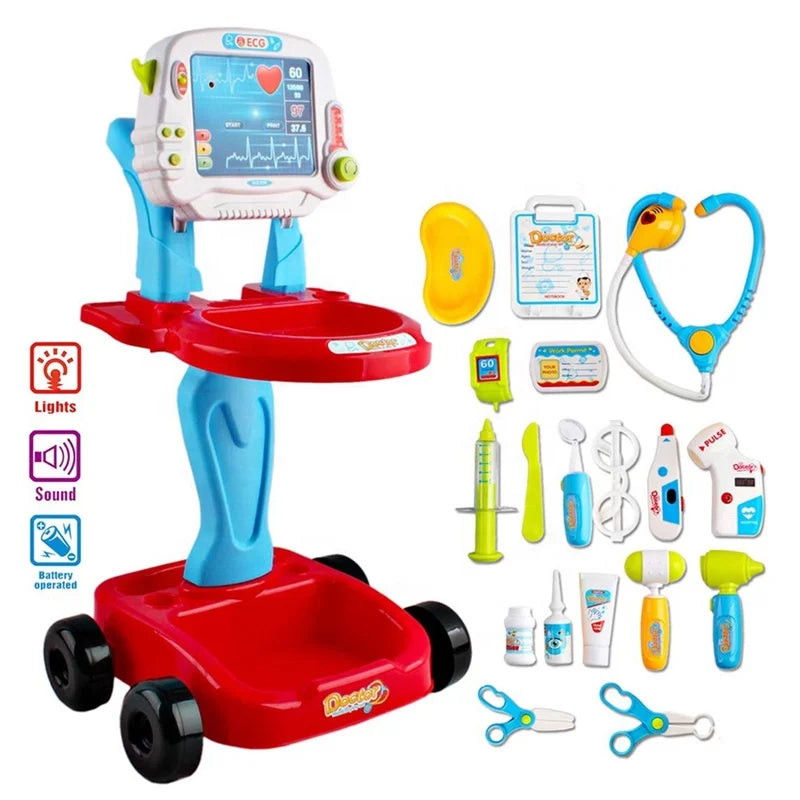 Musical Toy ECG Testing Equipment Set Pretend Play Medical Doctor Cart