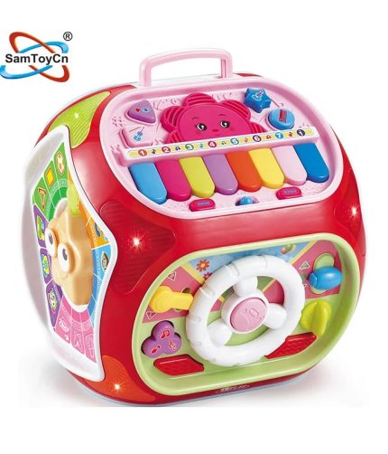 Multi Functional 6 in 1 Plastic Educational Sensory Toys Musical Sound Montessori Toys Activity Cube for Baby