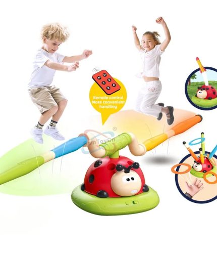 - Unique 3-in-1 Features: Offers multiple play options – jumping machine, throw ring game, and flying rocket.