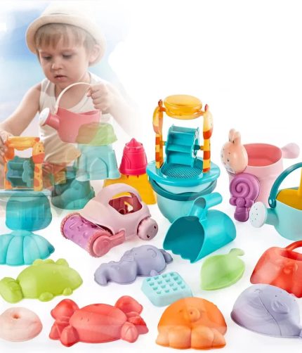 Summer 26 PCS Plastic Toddler Beach Essentials Cart Water Pot Bucket Sand Castle Model Kid Beach Sand Toys for Children