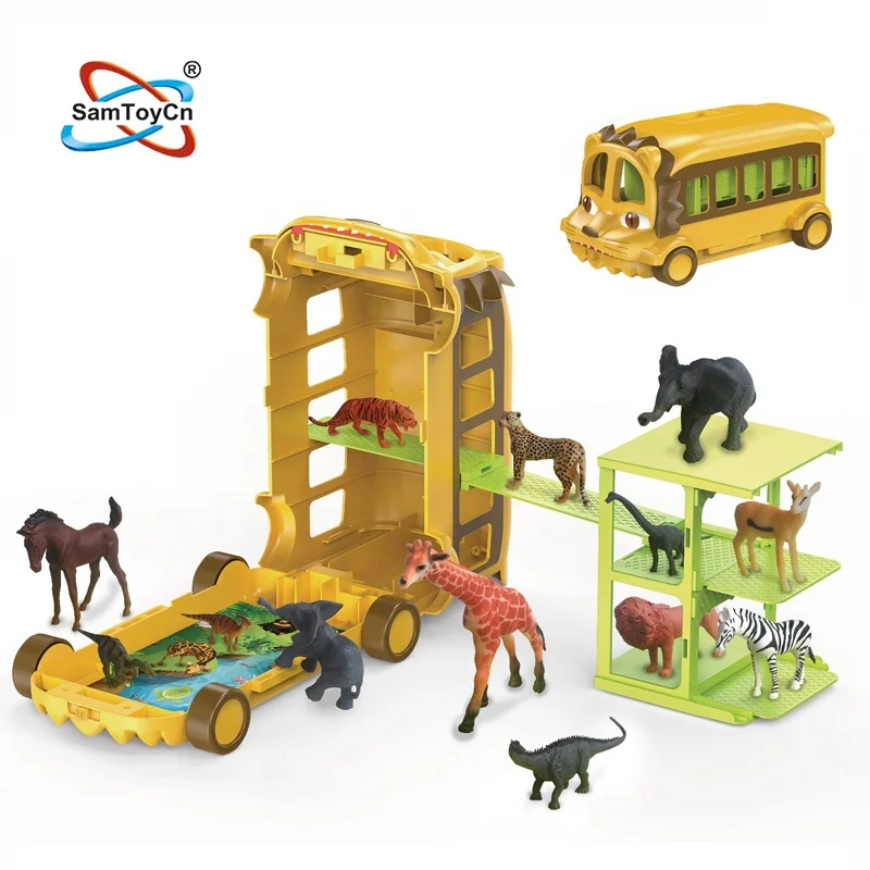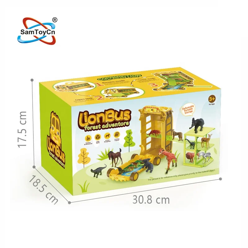 Plastic 12 Animals Wild Animal Lion Bus Toy with Certificated