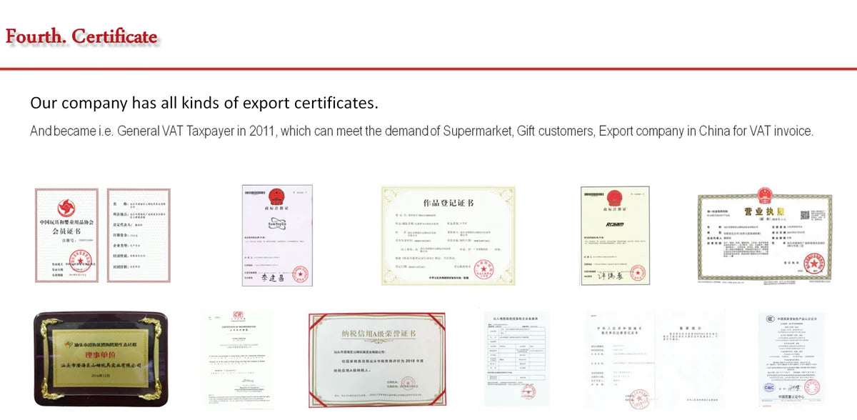 We can?provide?many kinds of certificates, such as EN71, 62115, EMC, R&TTE, Phthalate,Cadmium, ROHS, ASTM, CPSIA, FCC, etc.??