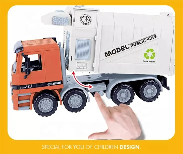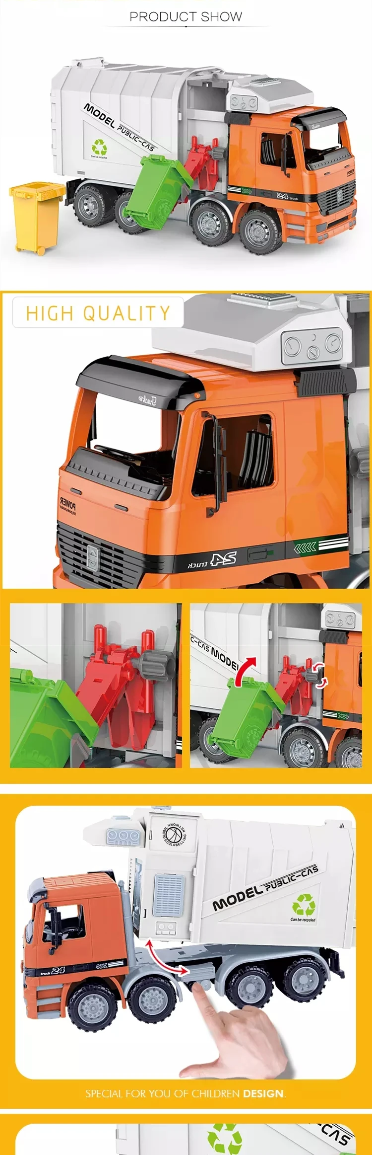 Manual Lift Friction Garbage Truck Toy with 1 Garbage Can?