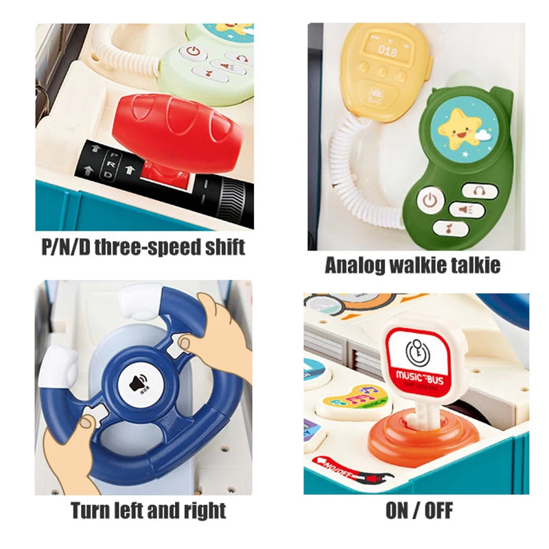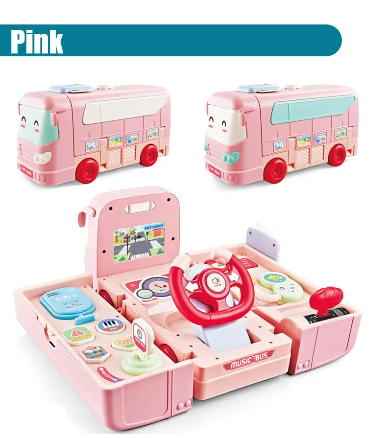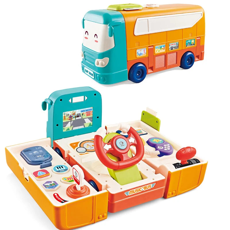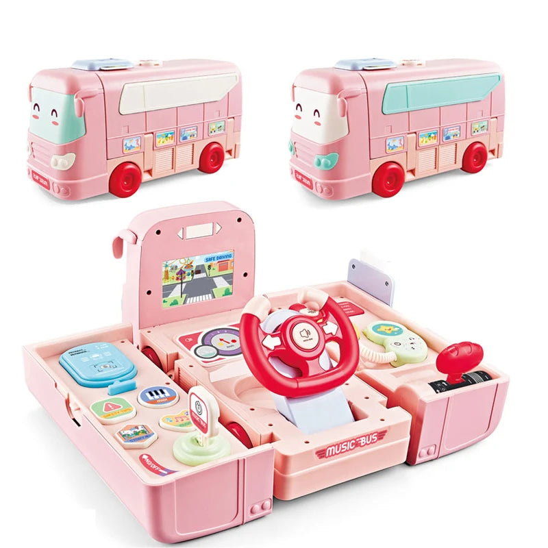 Plastic Multi-function Deformation Game Play Set Musical Simulation Steering Wheel School Bus Toy for Children Gift