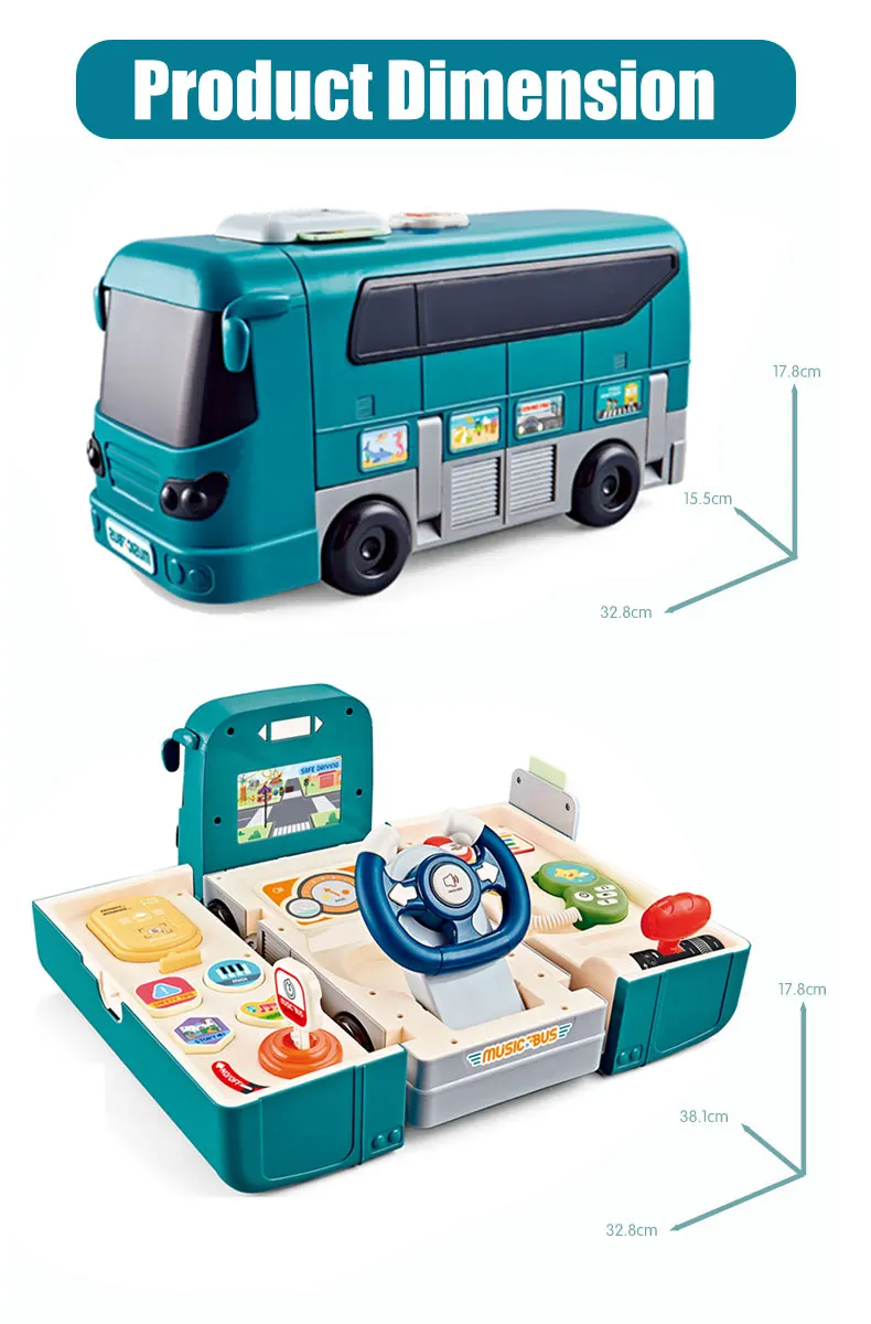 Age Range 5 to 7 years, 8 to 13 Years Place of Origin Guangdong, China Type Other Educational Toys Gender Unisex Brand Name GaryToy Model Number SM417108 Item Music School Bus Battery 3* AAA (not included) Sample Available Packing Color Box Packing size 33.2×15.6×18 CM Carton Size 68x49x56 CM QTY/CTN 18 PCS Weight 24/21.8 KGS OEM/ODM Available MOQ 1 Carton Packaging Details 1 box/ Color Box, 18 pieces/ CartonPlastic Multi-function Deformation Game Play Set Musical Simulation Steering Wheel School Bus Toy for Children Gift Port Shenzhen or Shantou Selling Units Single item Single package size 43.2X25.6X28 cm Single gross weight 1.000 kg Supply Ability 19200 Piece/Pieces per Week Projector Toy