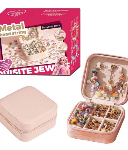 Girl Makeup Set Colorful Beads Fashion Jewelry Kids DIY Charm Bracelet Toys with Pink Bag