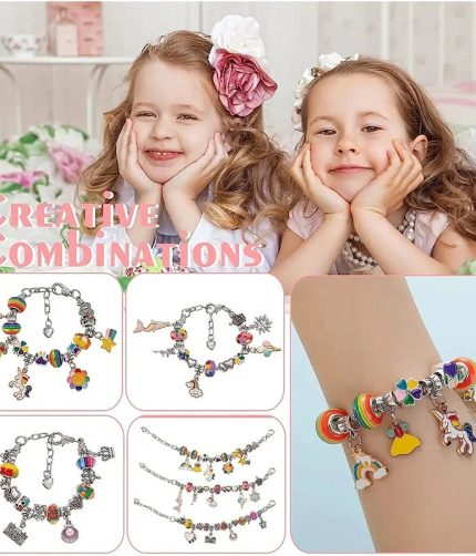 Girl Toys Charm Bracelet Handmade DIY Jewelry Beads Kit Bracelet Making Kit for Kids with Handbag