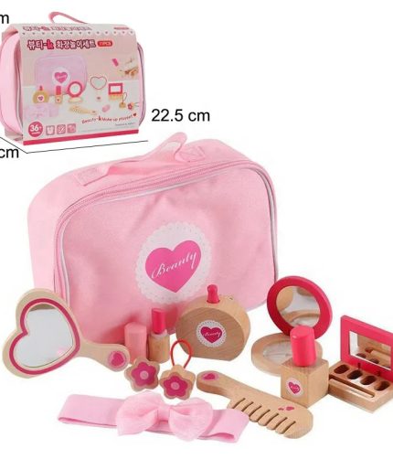 Hot Sale 11PCS Pink Girls Role Play Toys Make up Kit Wooden Toy Makeup with Cosmetic Bag for Kids