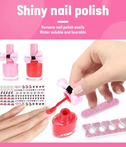 Samtoy DIY Set Pretend Play Nail Polish Manicure Set Washable Cosmetic Bag Kids Beauty Fashion Toys Girls Makeup Kit