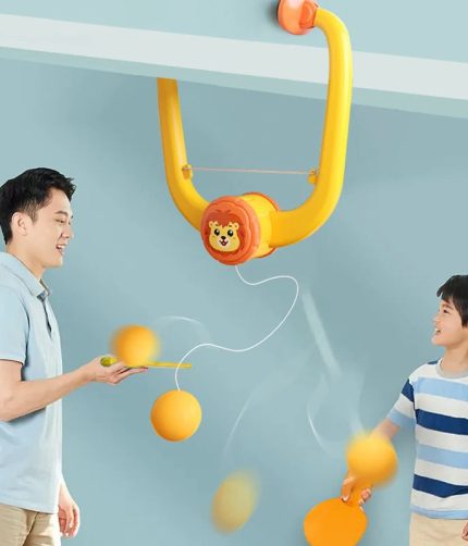 Kid Indoor Sport Toy Plastic Hanging Suspend Floating Pingpong Training Hanging Table Tennis Trainer with 2 Racket 3 Ball