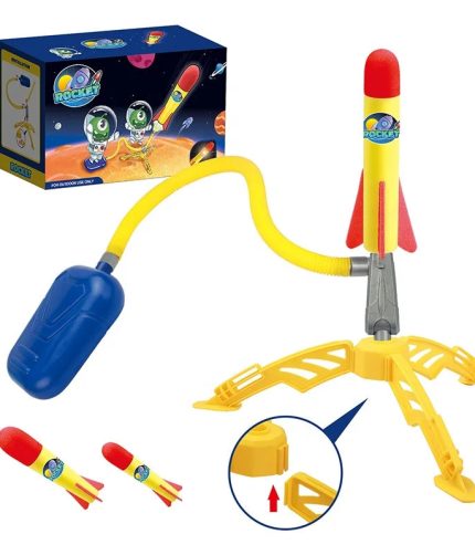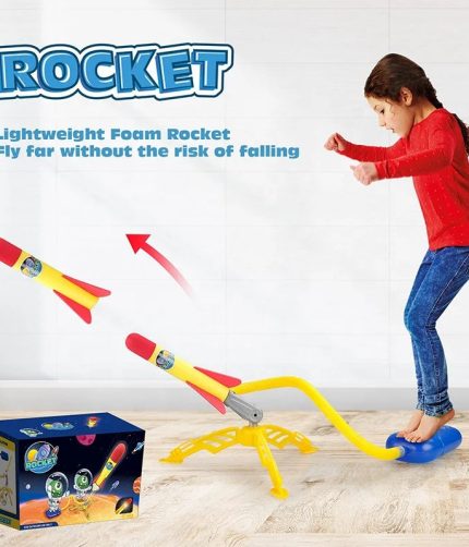 Kids Soft Pedal Air Pump Launcher Air Pressure Rocket Toy with 3 Rockets