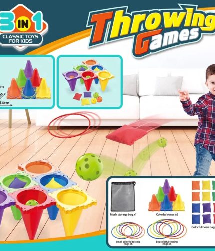 Interactive Indoor Sports Play Toy Tossing Ring Combo Tool Set 3 IN 1Colorful Cones Puzzle Throwing Game for Kids