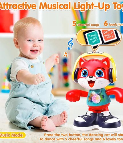 Samtoy Battery Operated Cartoon Interactive Intelligent Cat Sound Recording Walking Dancing Robot Toy with Light and Music
