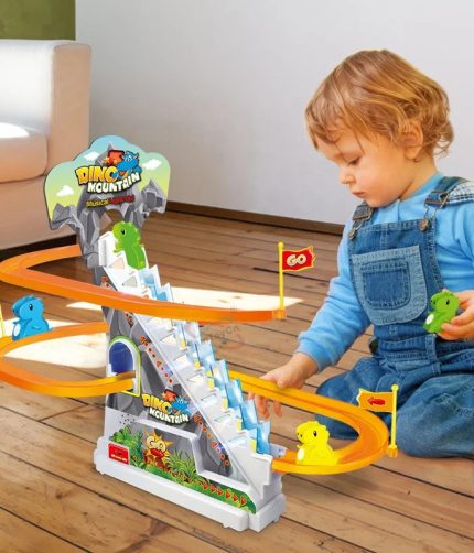 Battery Operated Automatic Games Slot Sliding Railway Track Roller Coaster Mini Dinosaur Climbing Stairs Toy with Music