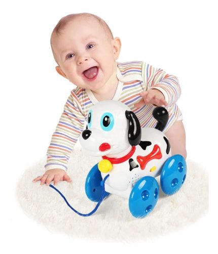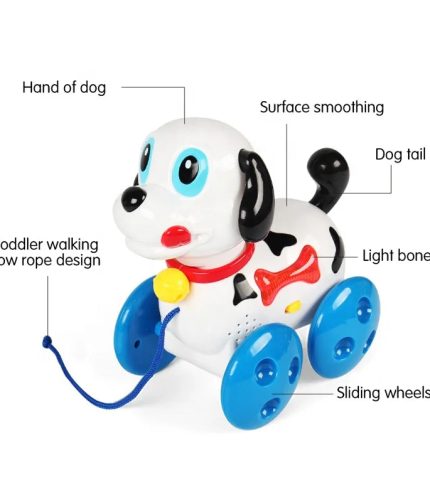 Battery Operated Plastic Dog String Pull along Car Educational Crawling Music Toys Pull Line Toys for Kids