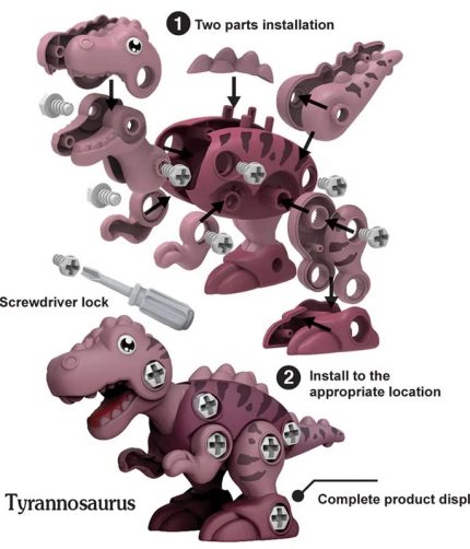 4 PCS Set 3D Puzzle STEM Disassembly Building DIY Take Apart Assembly Dinosaur Toy with Drill Screw