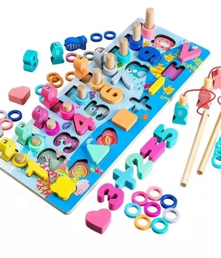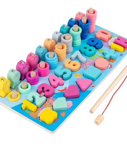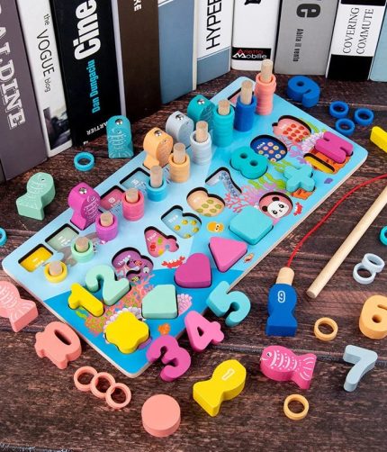5 In 1 Early Educational Fishing Numbers Matching Digital Shape Board Montessori Math Toys for Children
