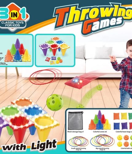 3 IN 1 Competitive Outdoor Play Sports Toy Plastic Ring Combo Set 6 Color Cones Kids Puzzle Throwing Game With Light
