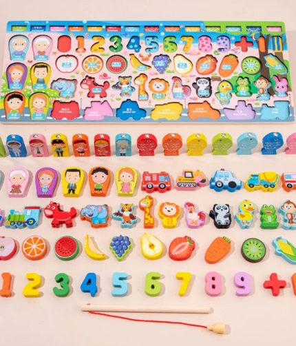 7 IN 1 Multifunctional Montesori Fishing Fruit Animal Pairing Cognitive Logarithmic Board Wooden toys For Child