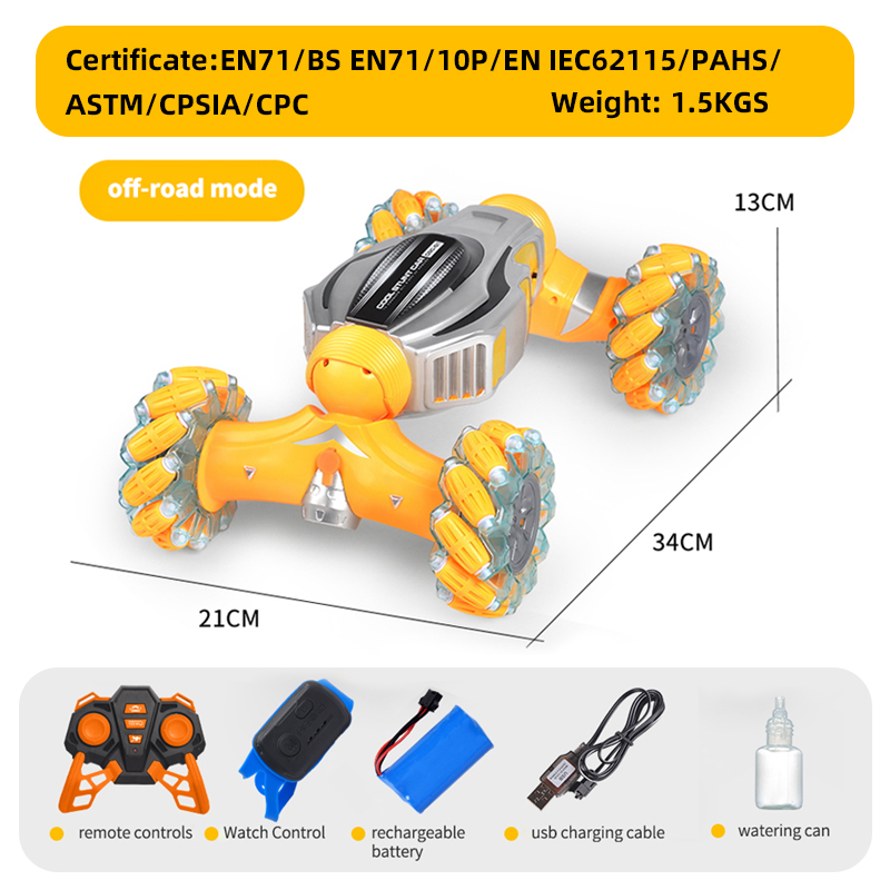 | Function | Dual Remote Control Spray Light Music Twist Stunt |