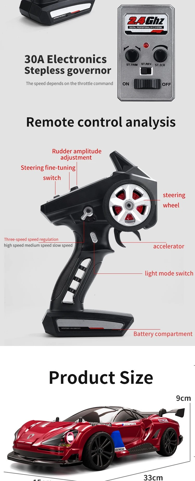 Detail of?Samtoy 2.4G 1:16 Cool Headlight 35KM/H 4WD Remote Control RC Drift Racing Cars For Adults With High Speed Professional