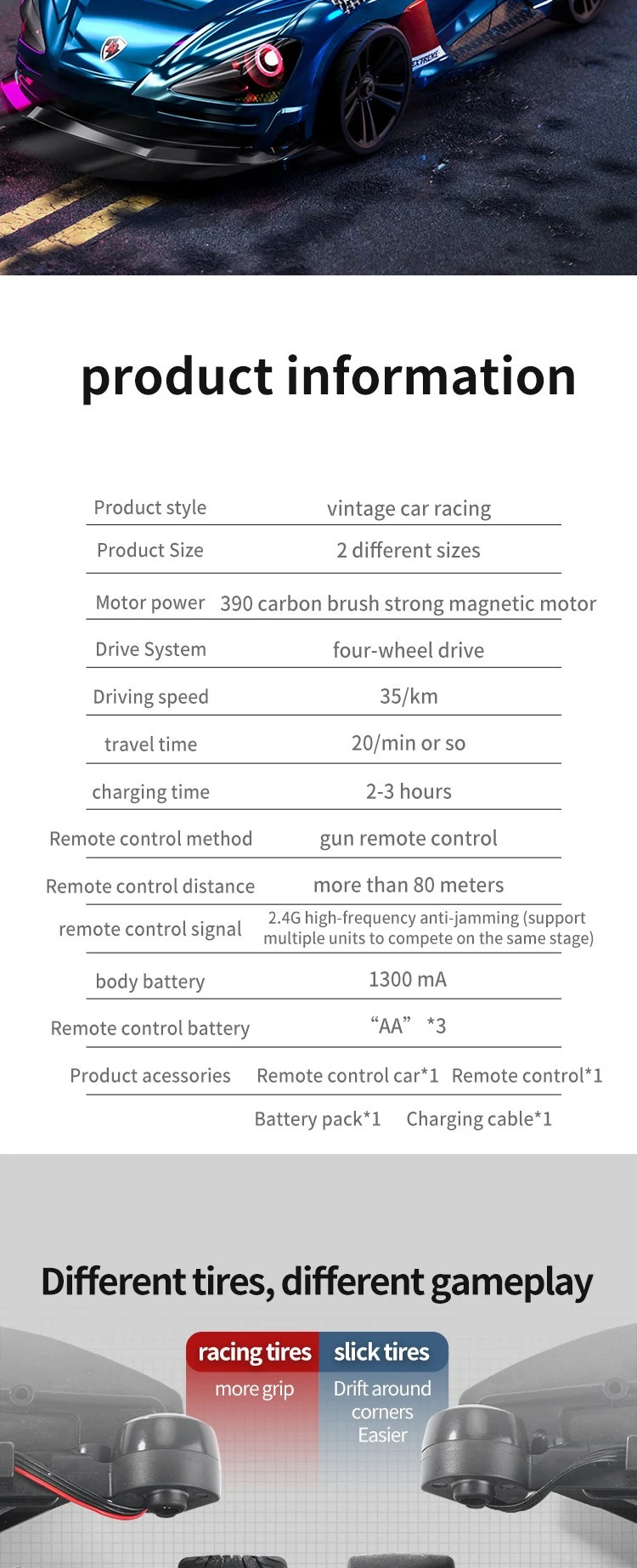 Item Name 1:16 B/O 4WD R/C Horizontal Drift Car (Racing Car)