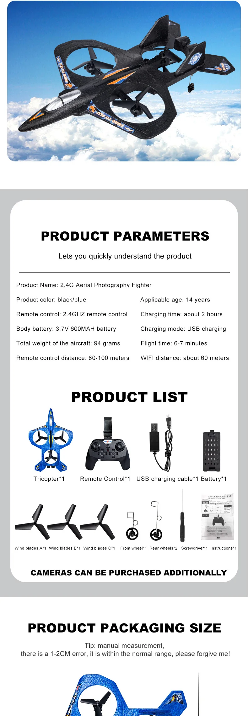 | Battery | 3.7V 600MAH high rate lithium battery |