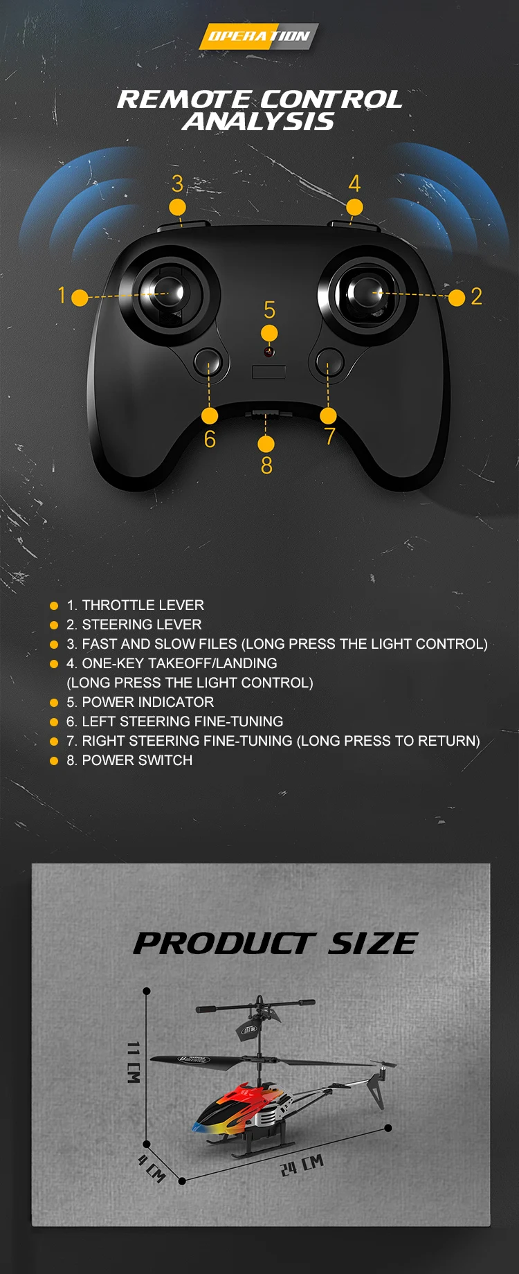 | Helicopter size | 24×4.5×11 CM |