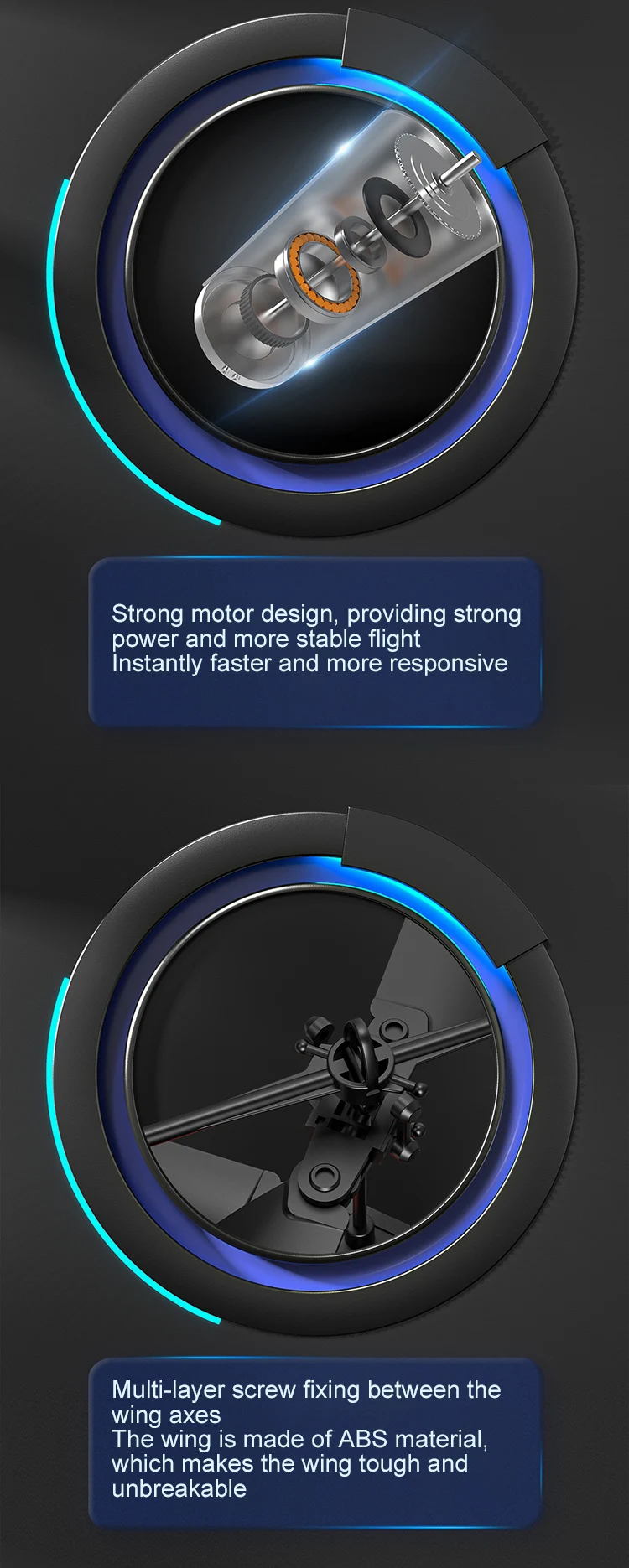 | Function | Which is stable in flight, flexible and strong against falling |