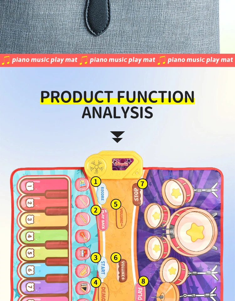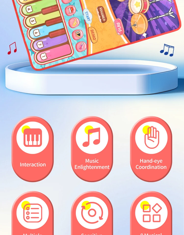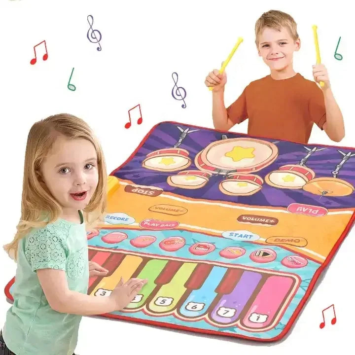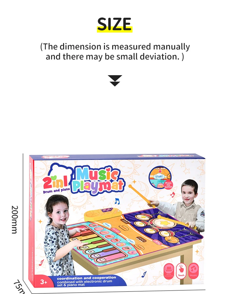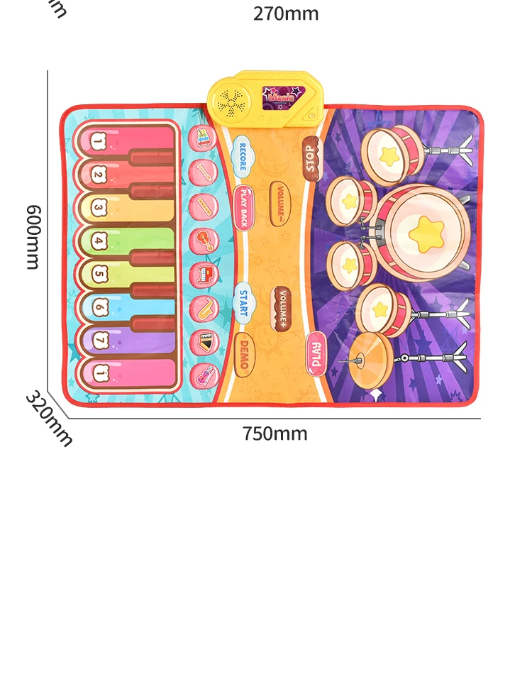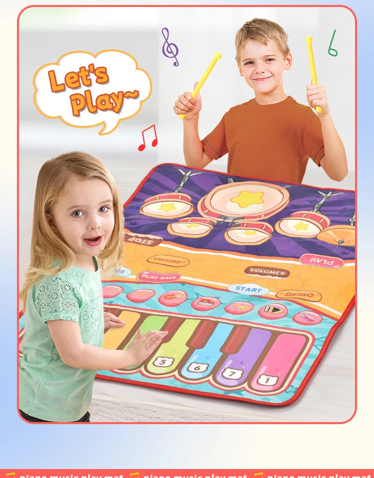 Samtoy 2 IN 1 Interaction Kid Activity Gym Toy Musical Instrument Jazz Drum Piano Music Blanket Baby Musical Play Mat For Infant