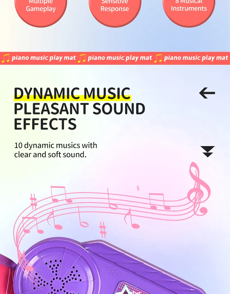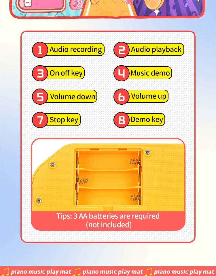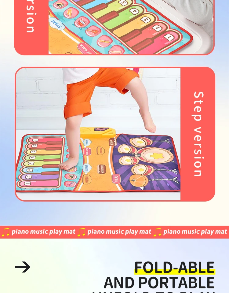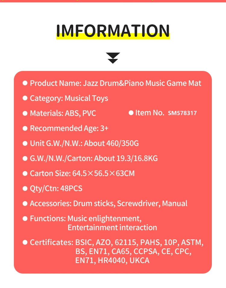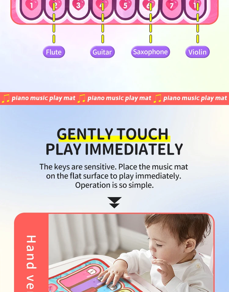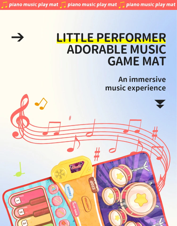 Samtoy 2 IN 1 Interaction Kid Activity Gym Toy Musical Instrument Jazz Drum Piano Music Blanket Baby Musical Play Mat For Infant