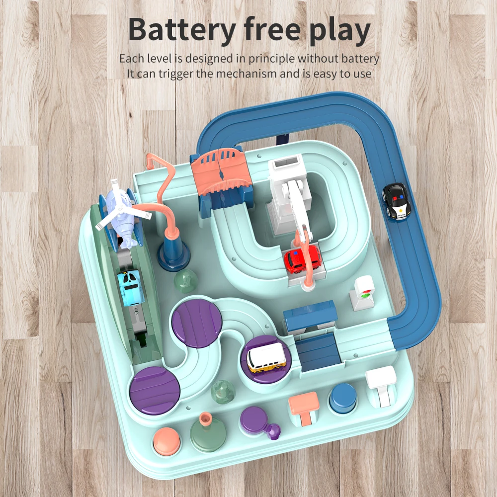 Login访问您的订单、愿望清单和推荐。 26CM 6 Button Educational Adventure Tracks Brain Game Kids Race Track Toys Car Adventure Toy with 4 Mini Cars