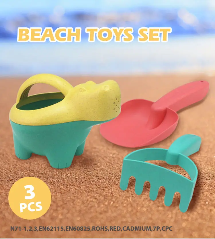 Product Description Samtoy 3PCS Animal BPA Free Wheat Straw Digger Water Summer Outside Sand Bucket Beach Toys Set with Beach Accessories