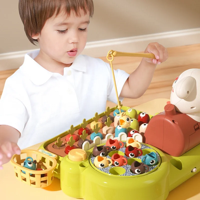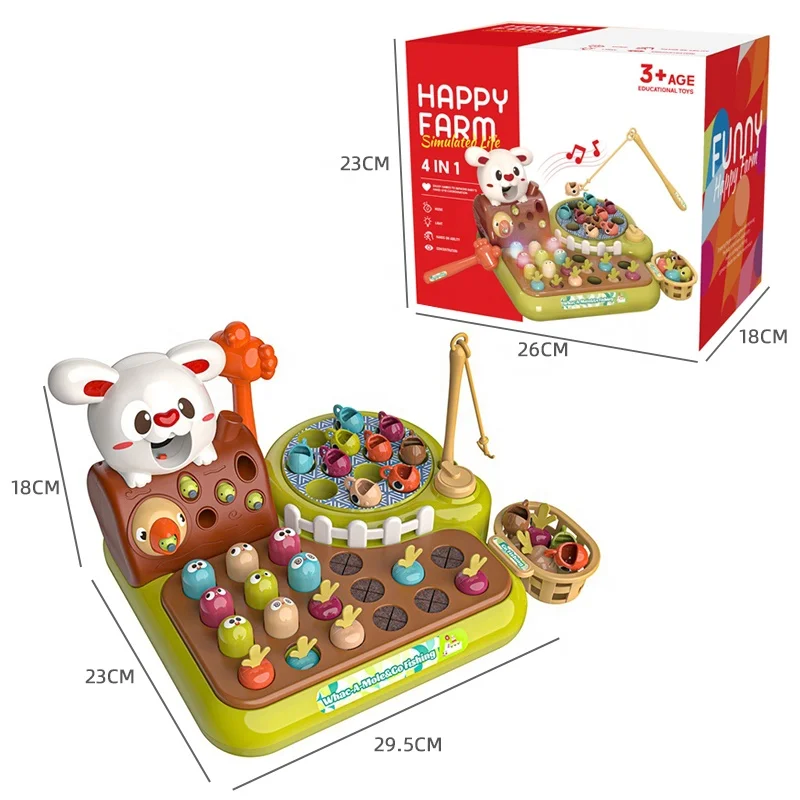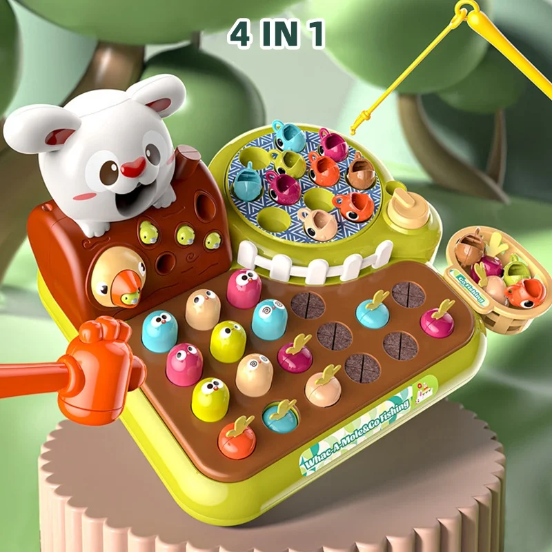 4 In 1 Funny Farm Baby Toy Fine Motor Board Game Hammer Whack-a-Mole Montessori Educational Magnetic Fishing Toys Set